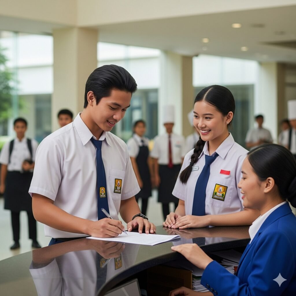 Pelatihan singkat untuk mempersiapkan skill/keahlian calon candidate untuk memenuhi kebutuhan kerja internasional baik di darat maupun kapal pesiar (cruise line) – Cocok untuk kalangan profesional, lulusan SMK/Diploma Pariwisata yang ingin cepat bekerja ke luar negeri.